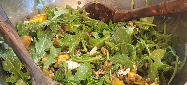 I do not claim that this salad is healthy in the strictest sense – there's plenty of fat and salt involved – but most of its constituent elements are broadly considered not terrible for your insides, and it's more satisfying than a lot of “fun” meals, many of which are little more than dog kibble for humans.