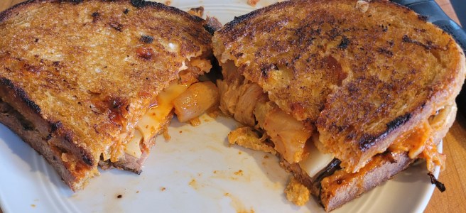 "This week's recipe is not for an actual Reuben, rather, it is for a variant on the Reuben that I developed over time, and mostly by accident... It isn't quite the same combination of flavors, but it scratches a similar itch and like the original it's at its best when the fillings are equally proportioned."